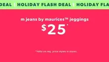 Buy one, get one 50% off select reg. price styles valid in any maurices store until November 15, 2025. 50% off offer is applied to less expensive item. No coupon needed in stores.