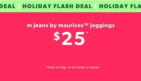 Holiday Flash Deal! Shop in store and get m jeans by maurices™ jeggings now for only $25.