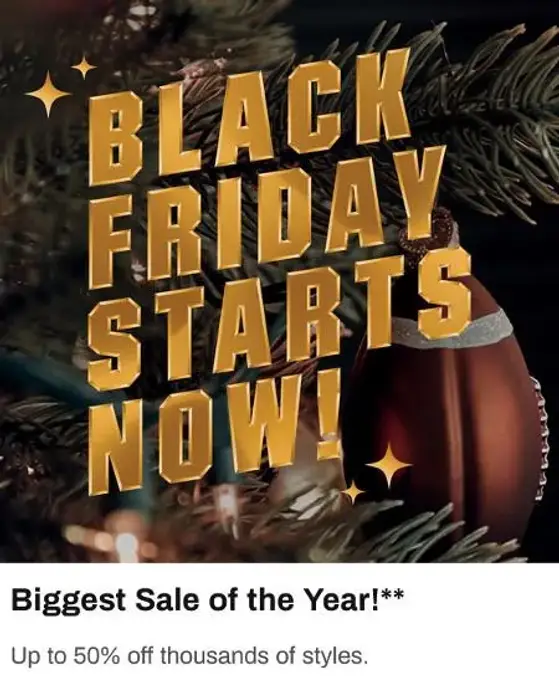 Biggest Sale of the Year! Shop in store and get up to 50% off select styles.